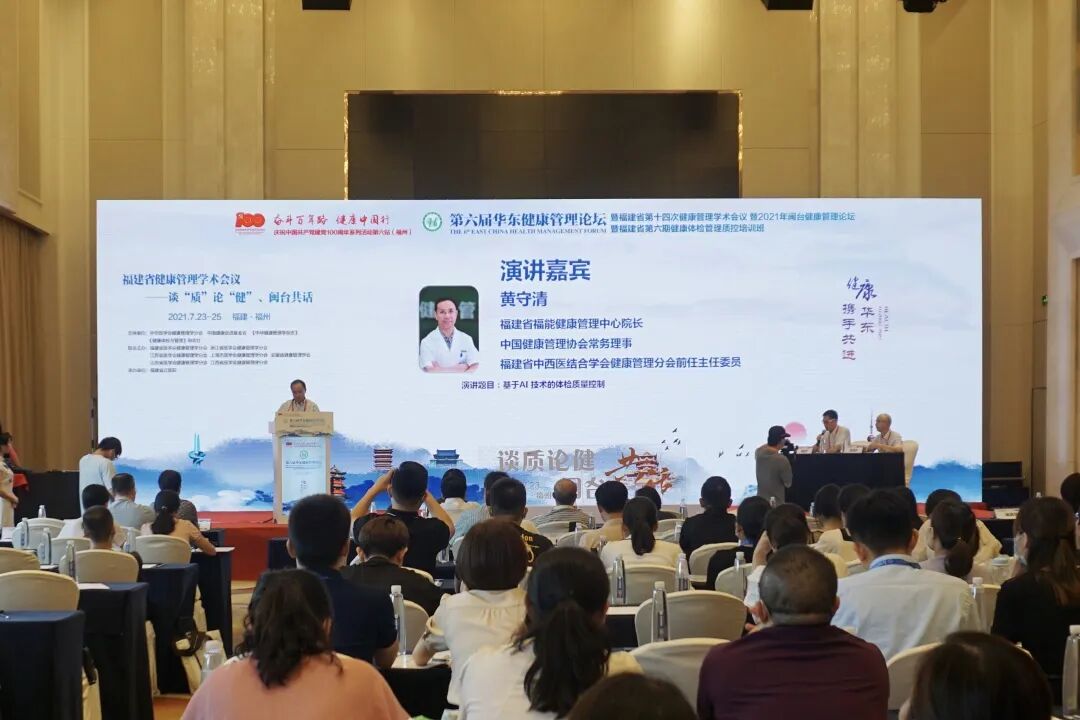 福建省福能健康管理中心院长、中国健康管理协会常务理事、福建省中西医结合学会健康管理分会前任主任委员黄守清在“谈质论健、闽台共话”的福建省健康管理学术会议上发表了“基于AI技术的体检质量控制”的主题演讲。