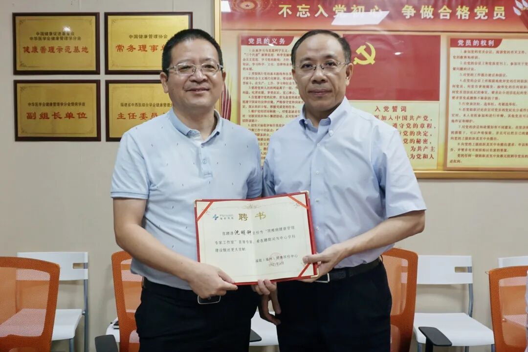 三尺讲台,一片丹心——今天是第三十七个教师节,在这个特殊的日子,福能体检中心又迎来了喜讯:“颈椎病健康管理工作室”于今日正式开诊。 福能体检中心今天上午举行了“颈椎病健康管理工作室”揭牌仪式。仪式由福能体检中心健康管理首席专家施洪主持,福能体检中心黄守清院长为沈明钟主任中医师颁发了“颈椎病健康管理工作室”首席专家的聘书,福能体检中心其他领导班子成员及各科室负责人一起参加了揭牌仪式。 黄守清院长指出,在世界卫生组织公布的“全球十大顽症”中,颈椎病排序第二,目前我国报道该病的发病率为17.3%,全国有2亿多患者,“颈椎病健康管理工作室”的设立,旨在为广大颈椎病患者提供科学治疗和康复方案,切实为患者解决烦恼、解除不适。 沈明钟主任指出,颈椎病属于退变性疾病,原本常见于50岁左右的中老年人群。然而近年由于智能手机及电子产品的普及,颈椎病在年轻人群中发病率也越来越高。从中医的角度来说,颈椎病发病主要是因久坐劳累致颈项部气血失和、经脉失养,在这种状态下,骤遇寒冷或闪挫扭伤或失养日久,使局部经脉不通,因而发为颈椎病。 沈明钟主任提醒,颈椎病反复发作,症状也会愈加严重,影响正常的工作和生活,甚至使人丧失劳动能力。另外,一些颈椎病的类型也会影响血压、心率变化或者脑部供血等,如果患者本来就存在心脑血管等方面的问题,同时又有颈椎病,那么很可能会因此而加重症状,危害心脑血管的健康,所以颈椎病应尽早治疗。 沈明钟主任从事脊柱健康保健三十几年,擅长通过针灸、推拿、中药及现代康复医疗手段,诊治颈肩腰腿痛、骨关节疾病及软组织损伤等疾病,欢迎广大患者前来咨询和诊治。 沈明钟 主任中医师。福能体检中心“颈椎病健康管理工作室”首席专家。毕业于福建中医学院针灸推拿系。福建省中医药学会康复推拿分会委员,福建省中医药协会健康管理分会委员,海峡南少林手法协会理事。从事针灸、推拿临床工作近30年,擅长通过针灸、推拿、中药及现代康复医疗手段,诊治颈肩腰腿痛、骨关节疾病及软组织损伤等疾病,获得满意效果。在省内外发表论文多篇。 “颈椎病健康管理工作室”门诊信息 预约电话: 400-6385-666 门诊时间: 周二上午 8:00-12:00 周四、六上午 8:00-14:00 周一、三、五下午 14:00-20:00 门诊地点: 福州市杨桥路大王里62号福能体检中心六楼613诊室