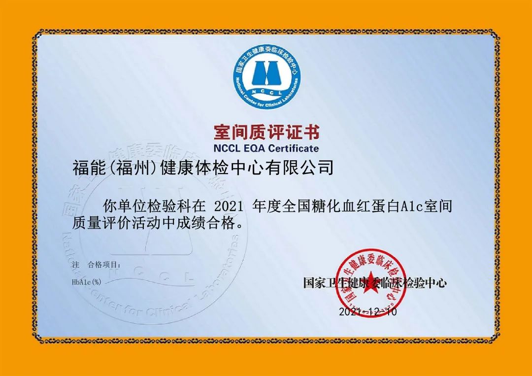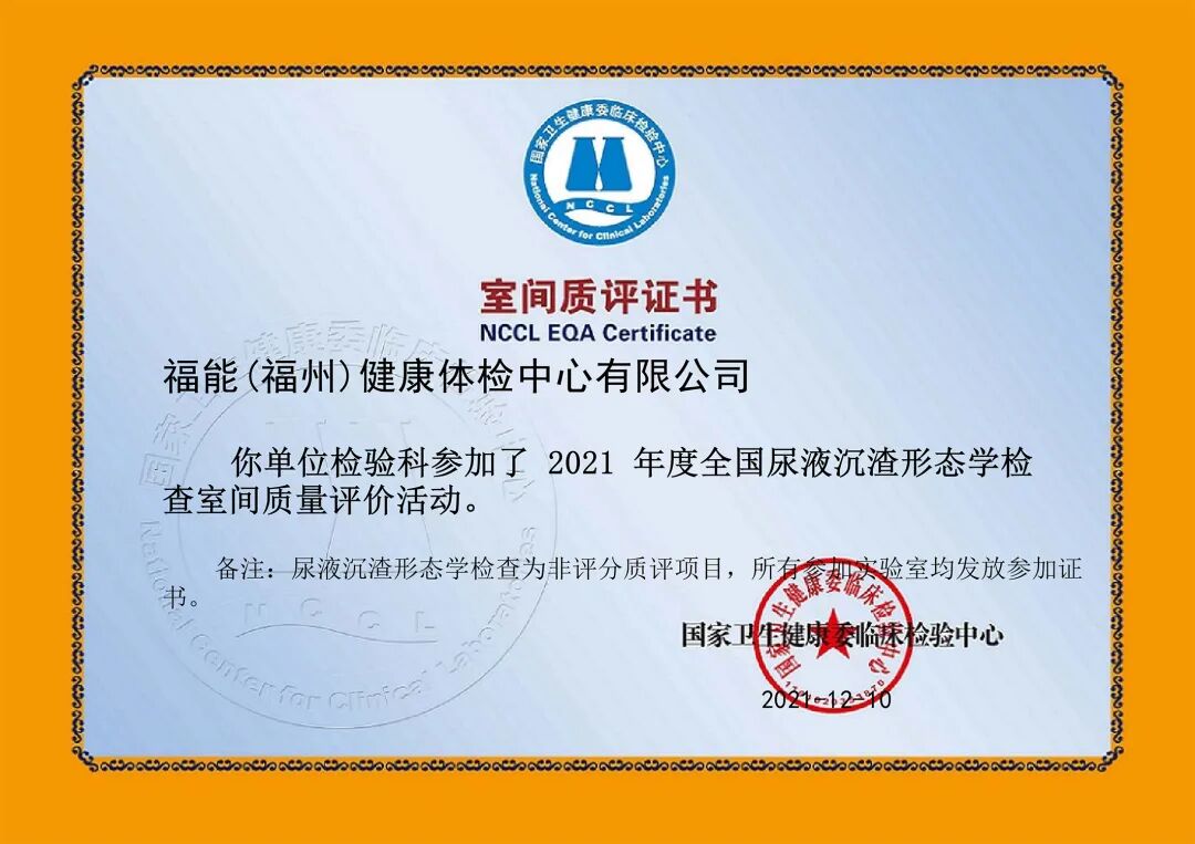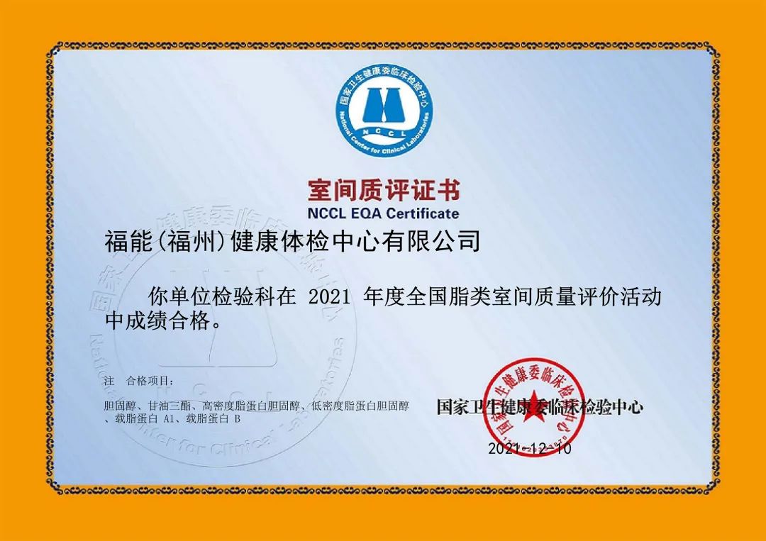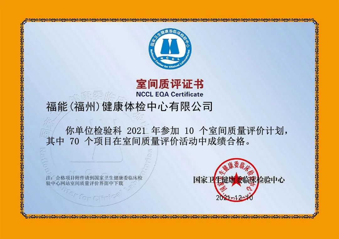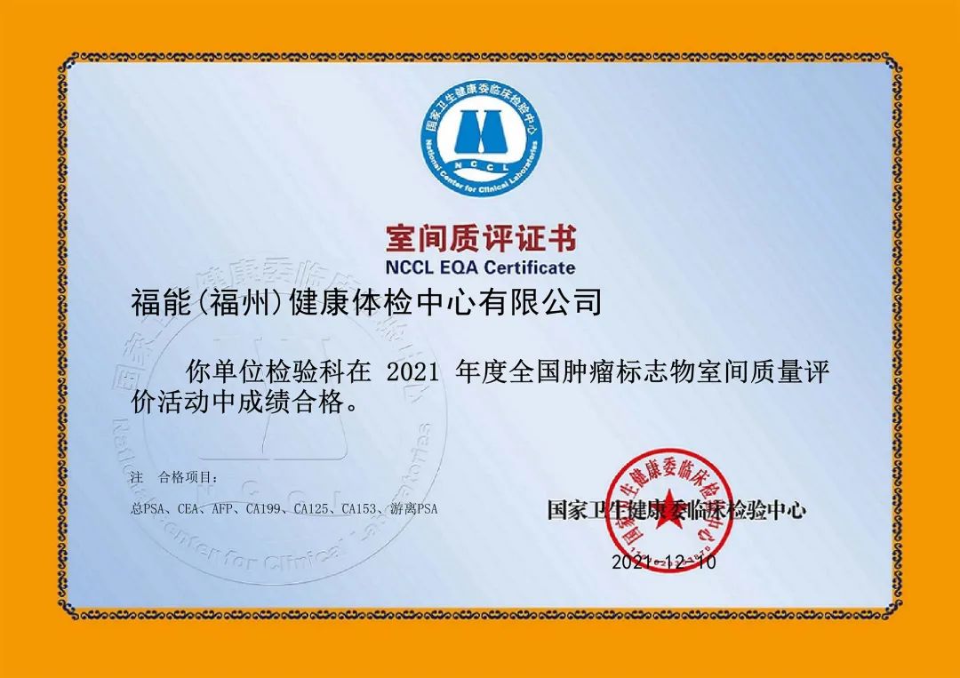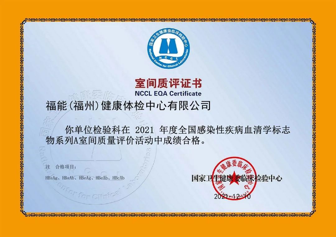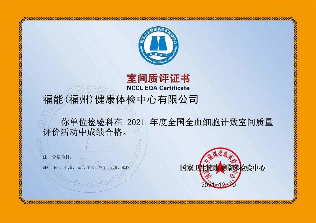 福能健康体检中心新年迎来喜讯,福能健康体检中心再次荣获2021年度卫生部临床检验中心室间质量评价合格证书。 连续五年得到行业权威质控机构的认可,说明福能健康体检中心实验室所有检验项目的检测结果完全符合国家标准,质量管理与控制体系达到行业最高等级标准! 卫生部临床检验中心(NCCL)作为卫生部临床检验质量管理与控制中心,其主要工作职责为组织全国临床检验质量管理和控制活动,组织开展全国医疗机构实验室室间质量评价。室间质量评价是国际公认的临床实验室全面质量管理的重要组成部分。这一系列的证书是对福能健康体检中心检验结果的准确性及视质量为生命的检验理念的充分肯定。 福能健康体检中心临床检验 室间质量评价合格证书 福能健康体检中心医学检验中心根据国家健康体检实验室最高标准建立,位于中心七楼,占地约1000平方米。检验中心配置有先进的罗氏E601化学发光分析仪、日立7600全自动生化仪、匈牙利郞迈尿液分析仪、希森美康XN-2000全自动血液分析仪及CS-2000凝血分析仪等。检验结果达到国家标准。