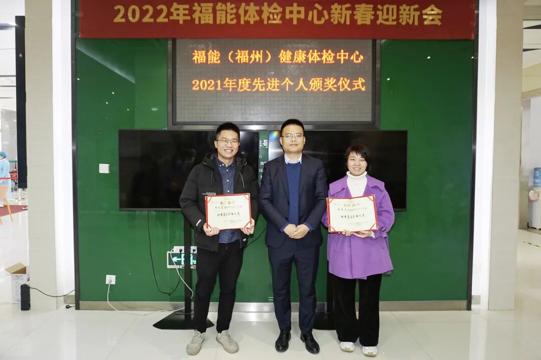 1月14日下午,福能健康体检中心新春迎新会圆满举行,中心领导班子及全体员工欢聚一堂辞旧迎新。 迎新会上,福能健康体检中心黄守清院长发表了致辞,带领大家回顾了体检中心2021年取得的成绩,并与大家共同展望未来,提出了“2022精细化管理年”的规划及目标。 在2021年度先进个人颁奖仪式环节,各位领导为获奖员工颁发了优秀带教、优秀新人、卓越服务奖、优秀医技人员、优秀基层管理人员、营销精英奖、优秀实习生、优秀中层管理人员、优秀建议奖等奖项,对2021年度的先进员工作出了表彰。 滑动查看更多精彩瞬间 颁奖仪式后,中心领导班子成员为全体员工送上了新春祝福。 迎新会后游园活动拉开帷幕,各部门精心策划了你比我猜、企鹅漫步、抓鸭子、听指令、快乐套圈、踩报纸等趣味游戏。大家卸下工作的疲惫,像孩子一样投入游戏当中,欢笑声此起彼伏。 滑动查看更多精彩瞬间 游园活动还设置了抽奖区和茶歇区,让大家在游戏之余,还可享受可口的零食茶点,并抽到精美礼品。 此次迎新会展现了福能体检中心员工团结、和谐的精神风貌。2022,大家将以更加昂扬的斗志投入到工作中去,为民众提供更优质的健康服务。 2021已经过去, 2022我们将继续砥砺奋进, 同心同行,共创美好未来! 祝愿大家在新的一年里, 身体健康! 阖家幸福! 虎虎生威!