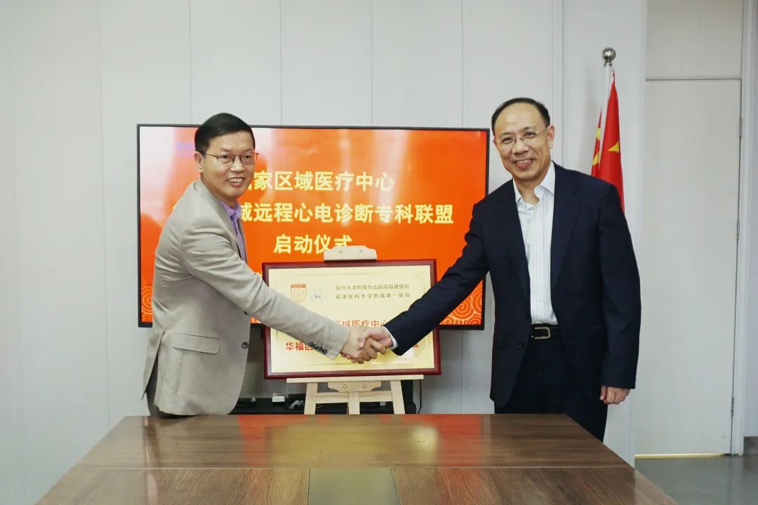 2023年4月11日下午,福建医科大学附属第一医院心血管内科与福能健康体检中心在福能健康体检中心七楼会议室举行了“国家区域医疗中心华福区域远程心电专科联盟”揭牌仪式,福建医科大学附属第一医院心血管内科行政主任林金秀教授、心血管内科蔡洪斌教授、心血管内科李贵副主任医师等一行及福能健康体检中心领导班子成员出席了本次揭牌。 林金秀教授和黄守清院长代表双方共同为“国家区域医疗中心华福区域远程心电专科联盟”揭牌,黄守清院长为林金秀教授及到场专家颁发了医学顾问聘书,附一心内科专家们将为体检中心学科建设及会诊疑难病例提供指导。 林金秀教授对福能体检中心精准体检和完备的检后健康管理服务给予了充分肯定,并介绍了附一医院心血管内科业务及团队构成情况。福建医科大学附属第一医院心血管内科是国家卫生健康委心血管介入诊疗培训基地、中国胸痛中心示范基地、美国心脏病学会培训示范中心、中国房颤中心、心血管康复中心挂靠科室。连续5年获华东地区心血管病声誉排行榜专科提名,获得2022年中国医院心血管专科百强。林金秀教授表示,心血管内科拥有大批国内外知名的专家,有信心、有能力为心血管患者提供精准干预和治疗。 黄守清院长对福建医科大学附属第一医院心血管内科给予的支持表示衷心感谢,并介绍了福能体检中心近几年来的发展历程及福能体检中心3.0健康管理体系——精准的健康体检+专业的健康管理+权威的疾病治疗的构建情况。黄守清院长相信,有了“国家区域医疗中心华福区域远程心电专科联盟”的加持,双方将发挥各自的优势,在科研、心血管检后健康管理和治疗上达成深度合作,更好地为民众健康保驾护航。